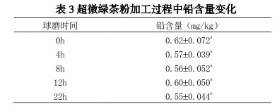 球磨加工對(duì)超微綠茶粉重金屬污染的影響